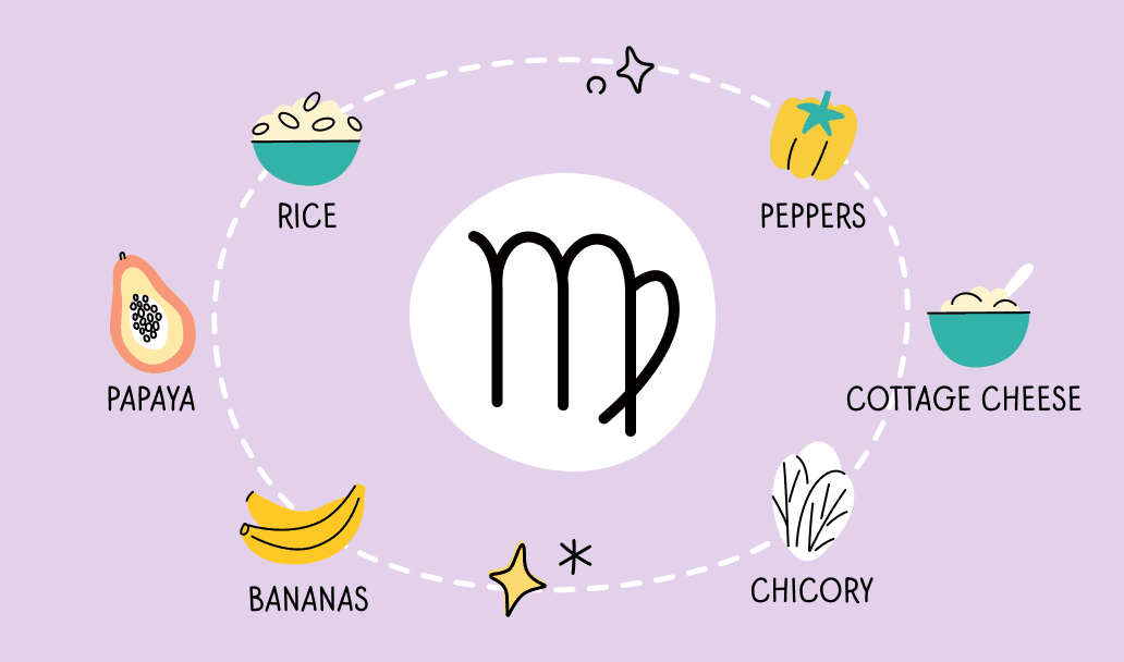 Rice and bananas are a carb-rich and gluten-free foundation for the Virgo diet, providing gut-friendly energy and sustenance. Add cottage cheese, and you have a potent source of protein, Vitamin B12, Sodium, Phosphorus, and Selenium for a healthy body and brain.6US Department of Agriculture. January 4, 2019 FoodData Central: cottage cheese Fdc.nal.usda.gov Retrieved from https://fdc.nal.usda.gov/fdc-app.html#/food-details/173417/nutrients